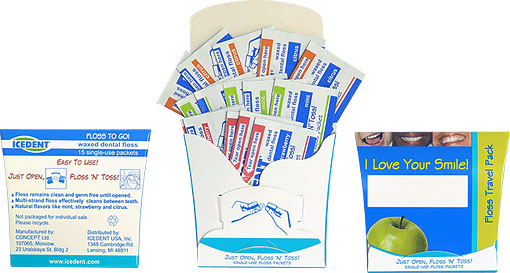 ICEDENT Prophylactic dental floss is designed for daily use to supplement traditional toothbrushing with toothpaste or gel. Wax-coated and flat, it easily slides between the teeth and effectively removes food particles and plaque from the spaces between the teeth. This dental floss contains natural flavorings such as mint, orange, strawberry, cinnamon, vanilla, or lemon, making, as well as beneficial, to use.